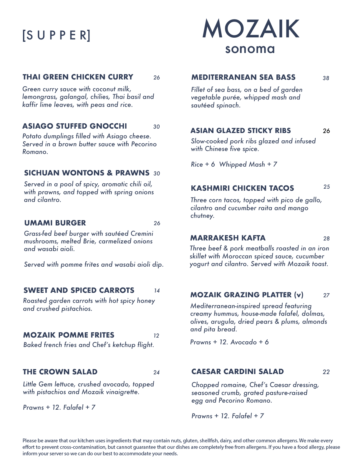 Whether you’ve been meaning to try us or you already know us well, this is a great time to come in and enjoy Mozaik—just a little more comfortably.